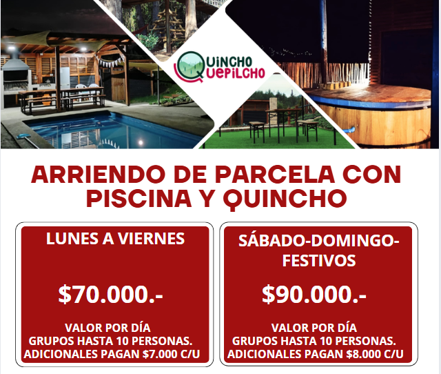 Zona de Quincho y Piscina Full Equipado por el día $90.000.-
