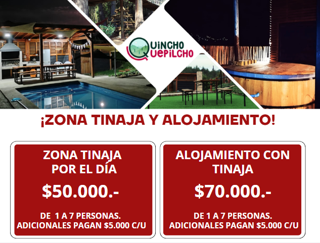 Zona Tinaja y Tiny House por el Día $50.000, Valor de Alojamiento $70.000.-